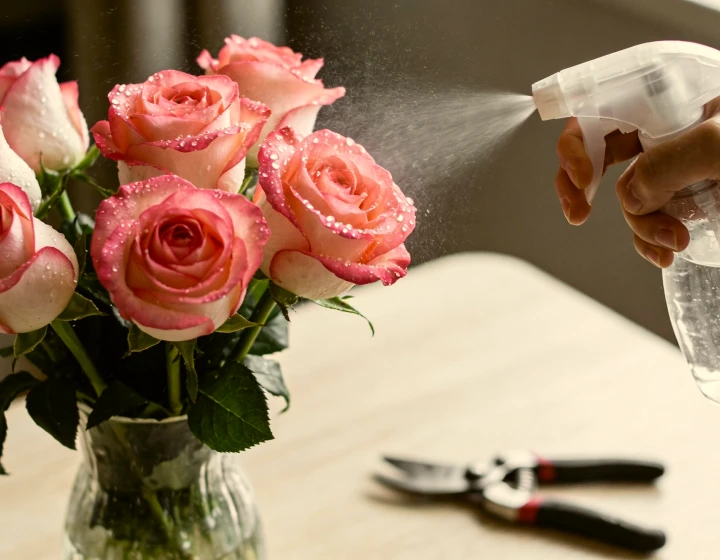 Опрыскивание повышает влажность вокруг бутонов, компенсируя испарение через лепестки. Используйте прохладную отстоянную воду, избегайте попадания крупных капель в центр раскрытых цветков — это провоцирует гниение. Опрыскивайте розы в утренние часы и вечером, когда нет прямого солнца.
