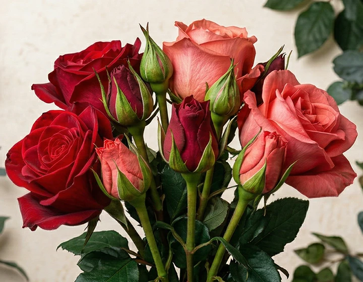 Неподходящие условия. Розы не любят жару, сквозняки и прямые лучи солнца. При температуре выше +25 °C бутоны раскрываются быстро, но тут же осыпаются. При +15–18 °C цветение медленное, но продолжительное. Держите букет в прохладном помещении, вдали от батарей и фруктов (они выделяют этилен — газ, ускоряющий старение).